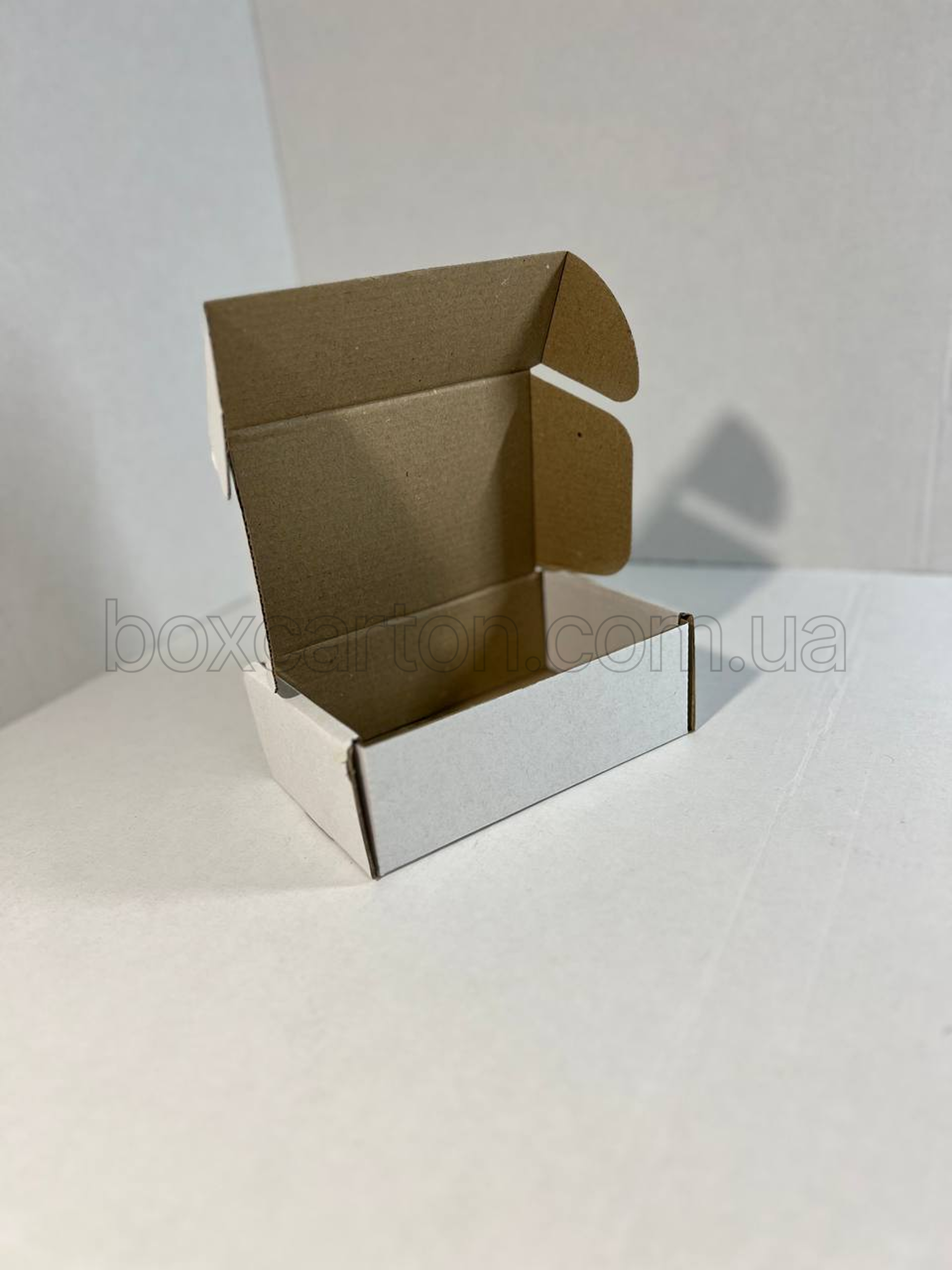 Біла коробка конструкції K0427 розміром 150×100×57 мм виготовлена з міцного двошарового гофрокартону (2-й). Завдяки білому зовнішньому шару пакування має охайний і презентабельний вигляд, тому підходить як для інтернет-замовлень, так і для подарункового оформлення та роздрібної торгівлі. Конструкція забезпечує стабільність форми та надійний захист продукції під час транспортування й зберігання.