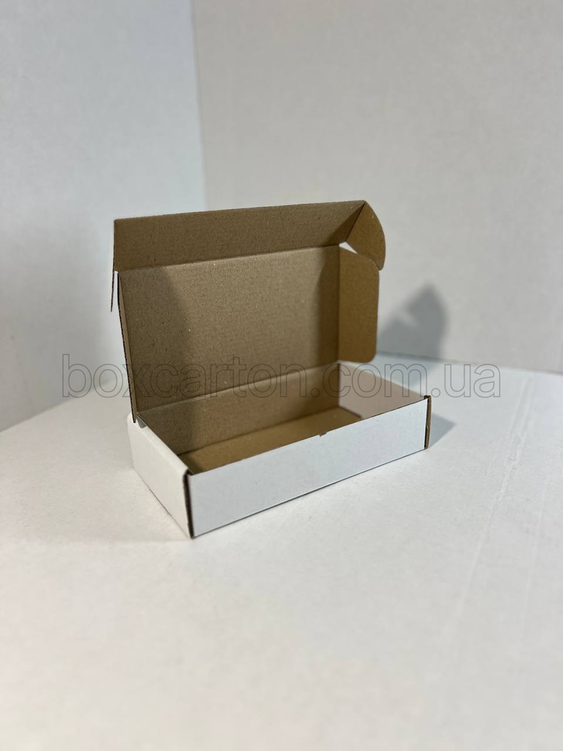 Біла коробка конструкції K0427 розміром 190×103×43 мм виготовлена з двошарового гофрокартону (2-й). Білий зовнішній шар надає пакуванню охайного, презентабельного вигляду, що робить цю модель доречною для подарункових наборів, інтернет-замовлень і роздрібного продажу. Конструкція забезпечує збереження форми та надійний захист вмісту від подряпин і легких механічних пошкоджень під час транспортування та зберігання.
