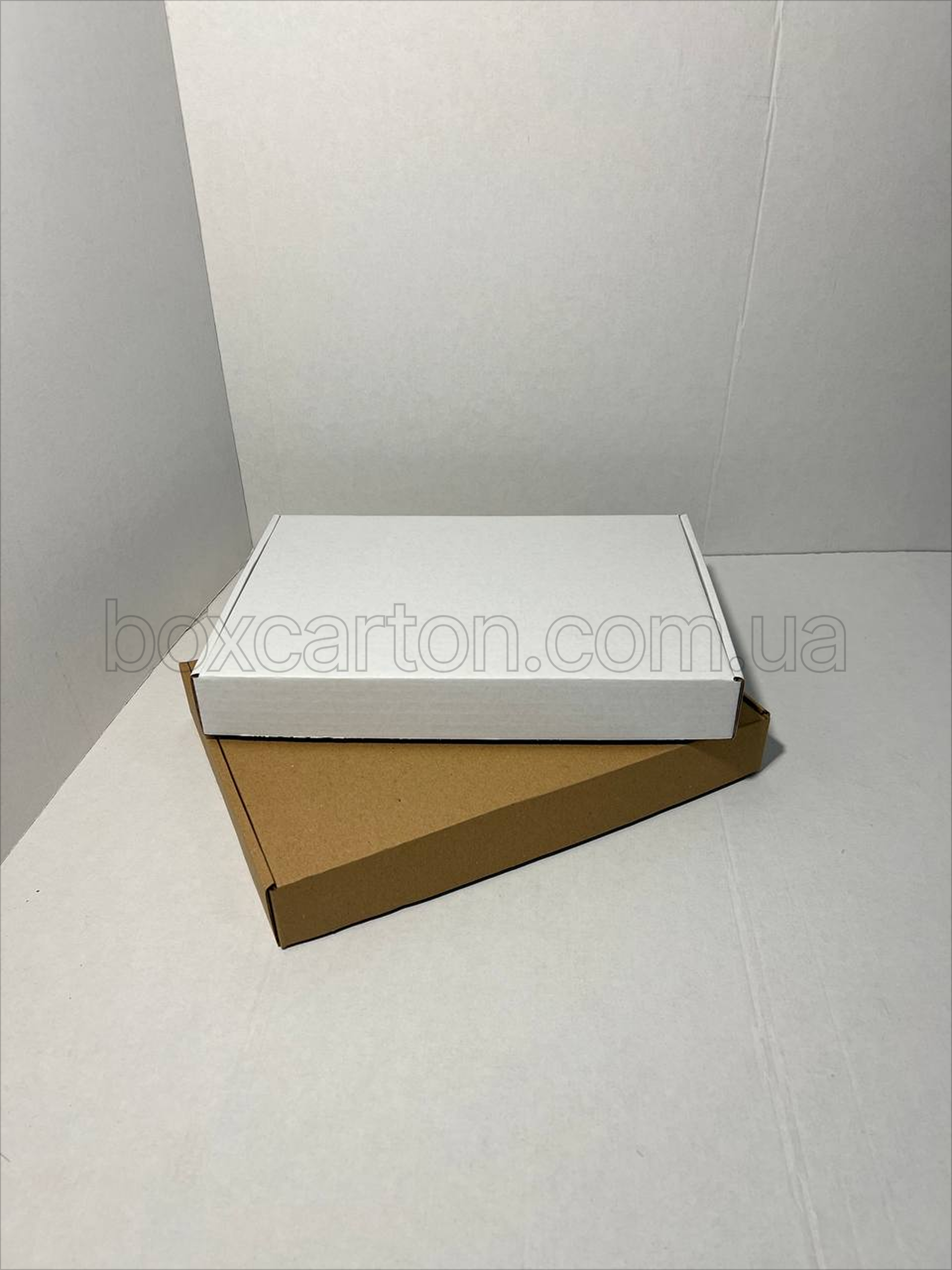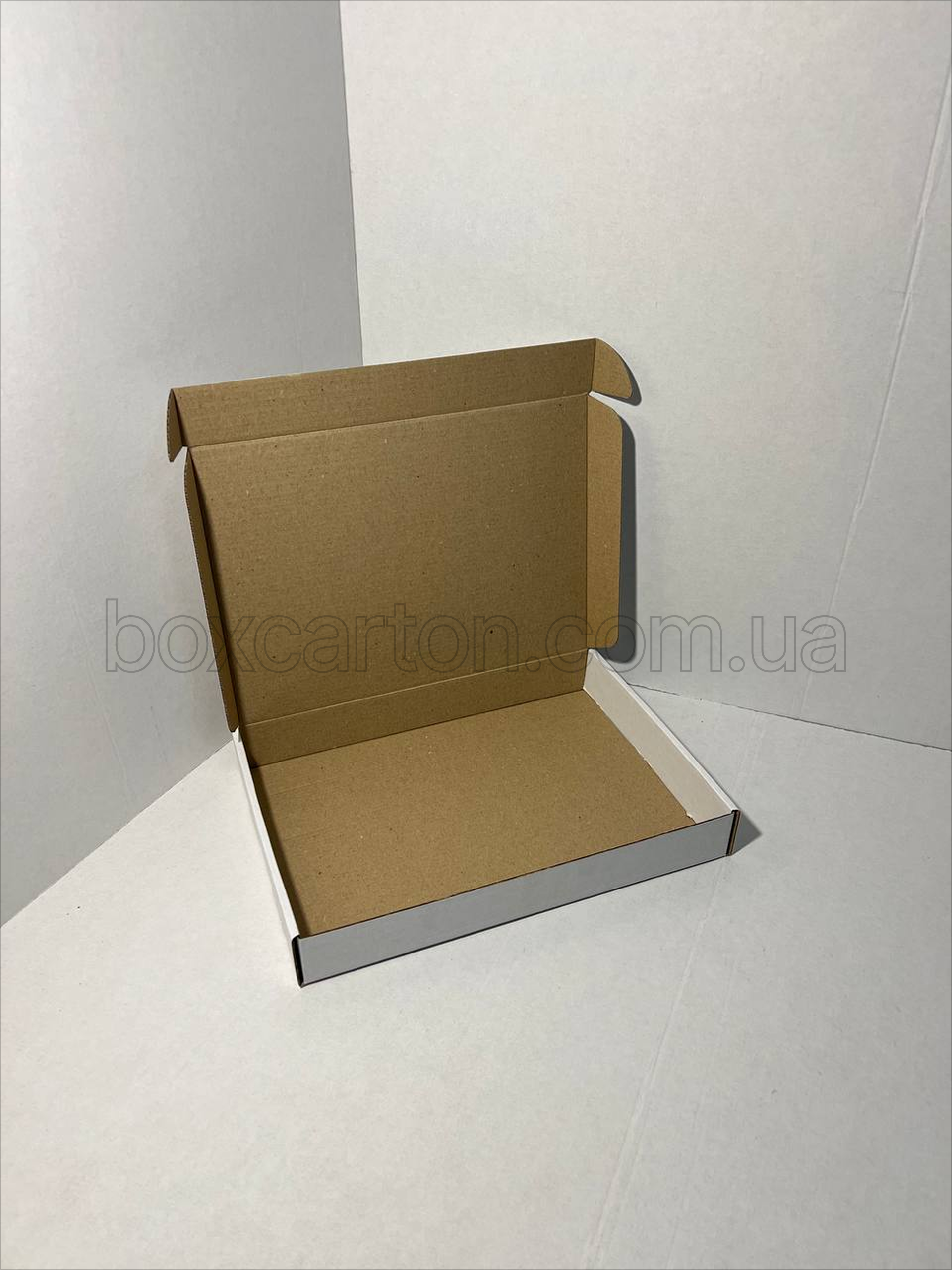Біла коробка конструкції K0427 розміром 315×230×43 мм виготовлена з гофрокартону 1-го типу та призначена для пакування легких і плоских товарів. Білий зовнішній шар надає упаковці охайного та презентабельного вигляду, що робить її придатною для брендових, подарункових і роздрібних відправлень.