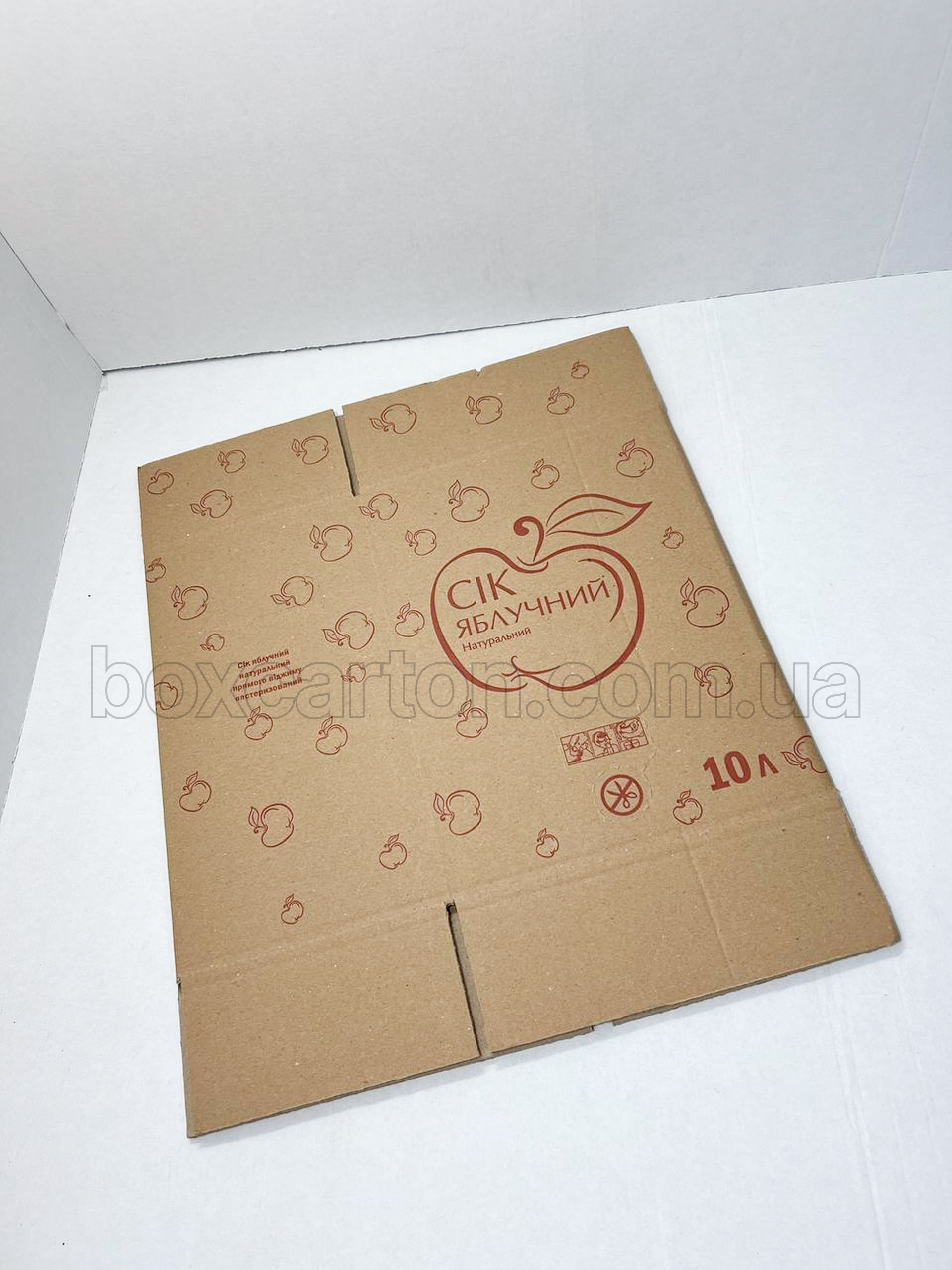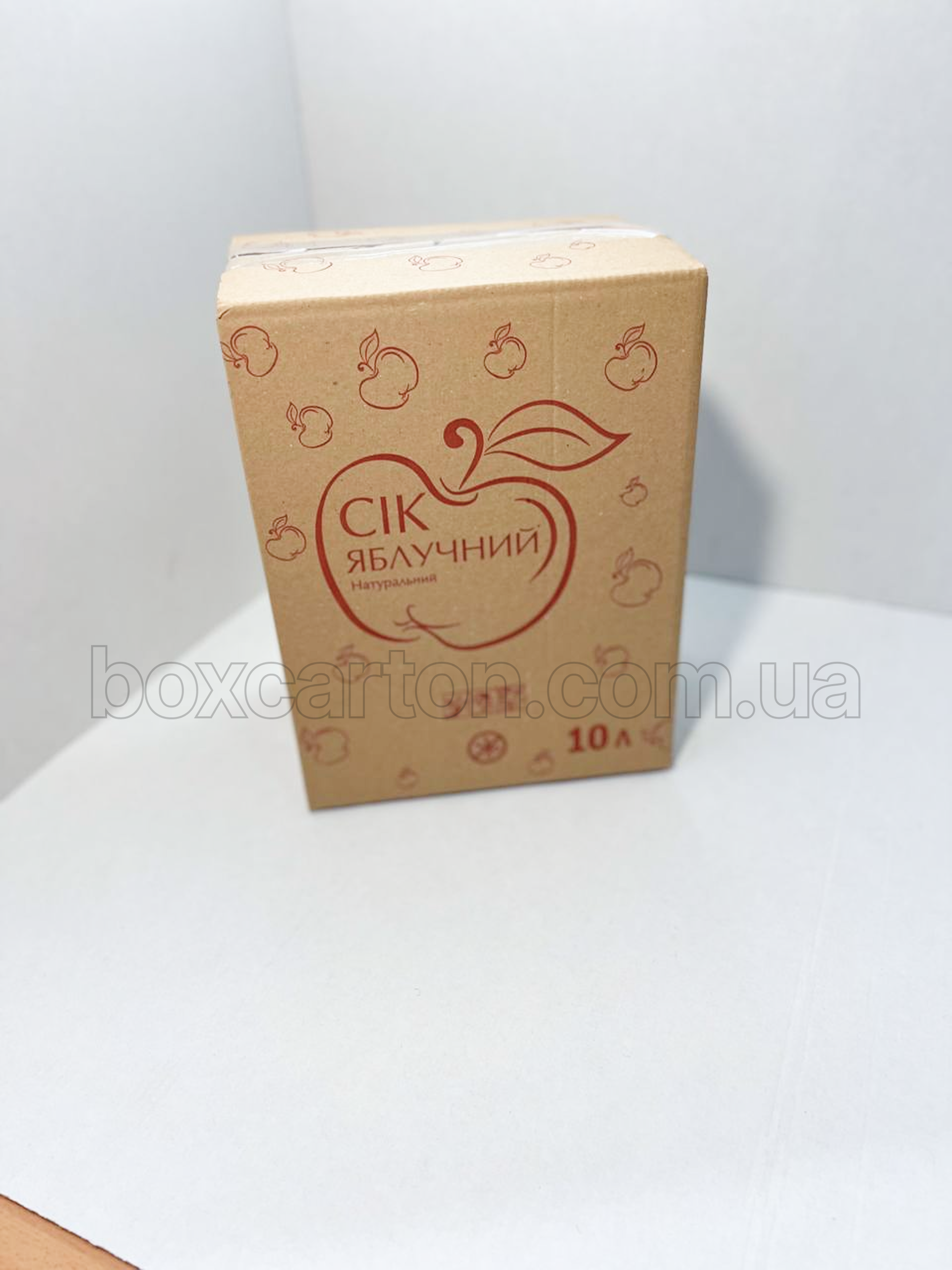 Коробка об’ємом 10 літрів типу ПРП призначена для пакування, зберігання та транспортування соків і рідких продуктів у форматі bag-in-box. Виготовлена з гофрокартону марки П32Ф0 з комбінованою хвилею ЕВ, що забезпечує підвищену міцність, жорсткість конструкції та надійний захист пакета під час логістики.