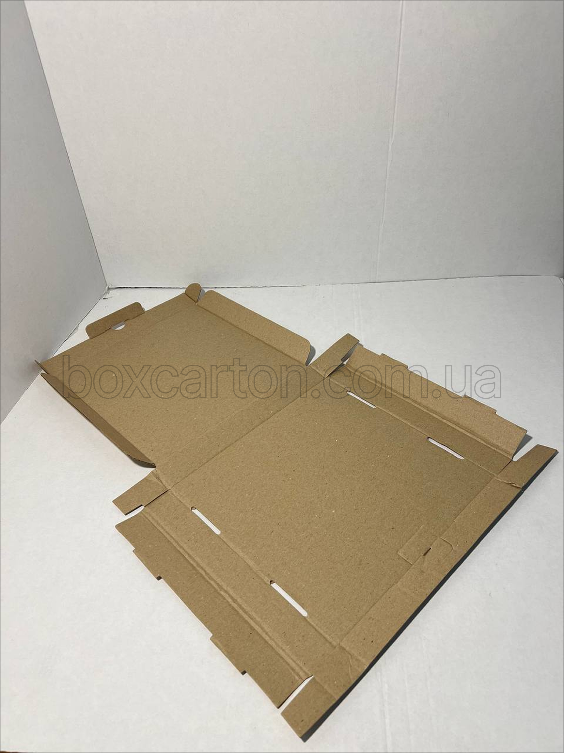 Коробка конструкції K0427 розміром 230×230×30 мм виготовлена з двошарового гофрокартону (2-й) і призначена для пакування плоских та компактних виробів. Невелика висота 30 мм робить цю модель оптимальною для поліграфічної продукції, документів, каталогів, а також для тонких товарів інтернет-магазинів. Міцний матеріал забезпечує надійний захист вмісту від подряпин і легких механічних пошкоджень під час транспортування та зберігання.
