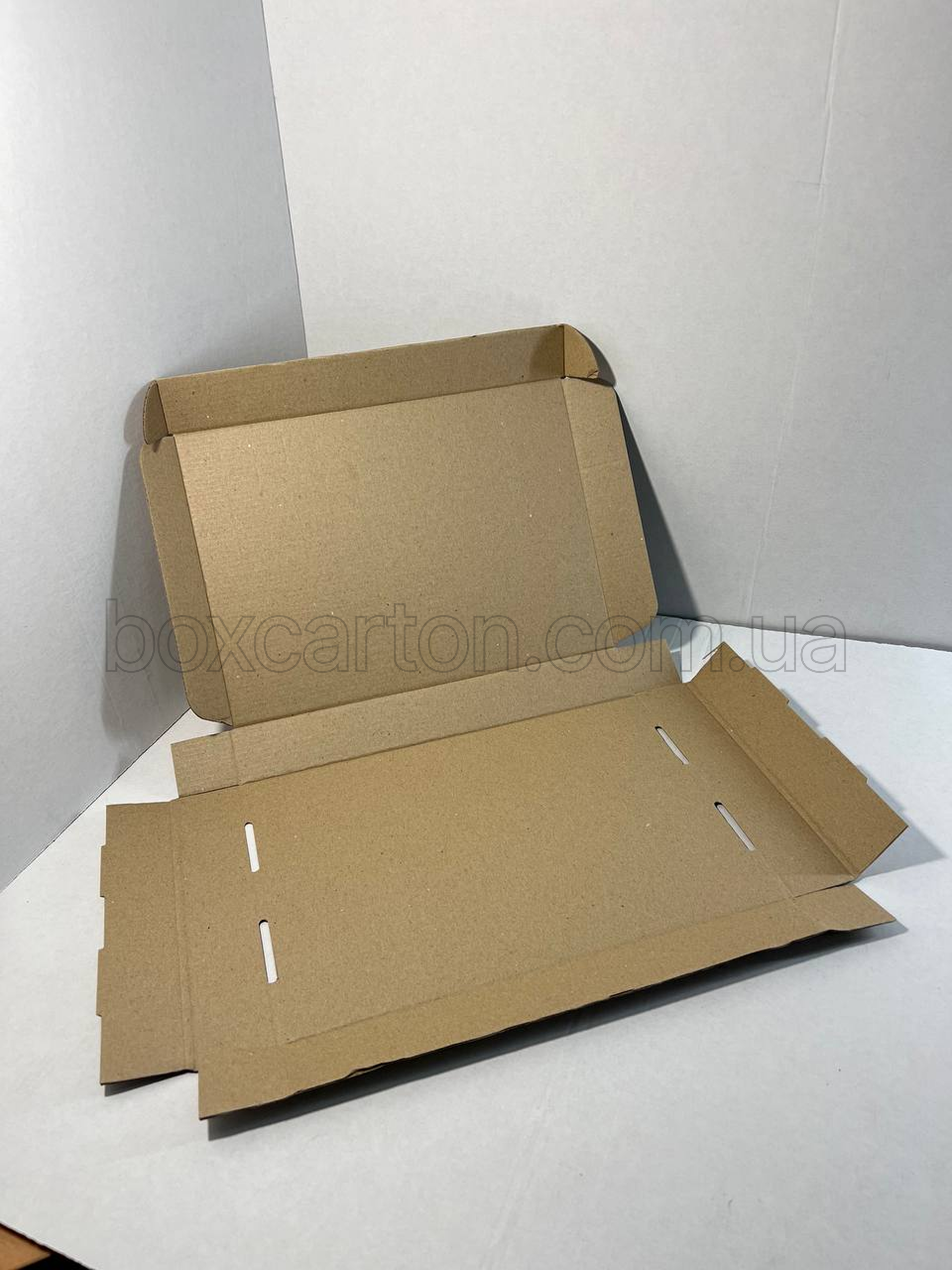 Коробка конструкції K0427 розміром 315×230×43 мм виготовлена з гофрокартону 1-го типу та призначена для пакування легких і плоских виробів. Конструкція забезпечує акуратний зовнішній вигляд і базовий захист продукції від подряпин і незначних механічних впливів під час транспортування та зберігання.