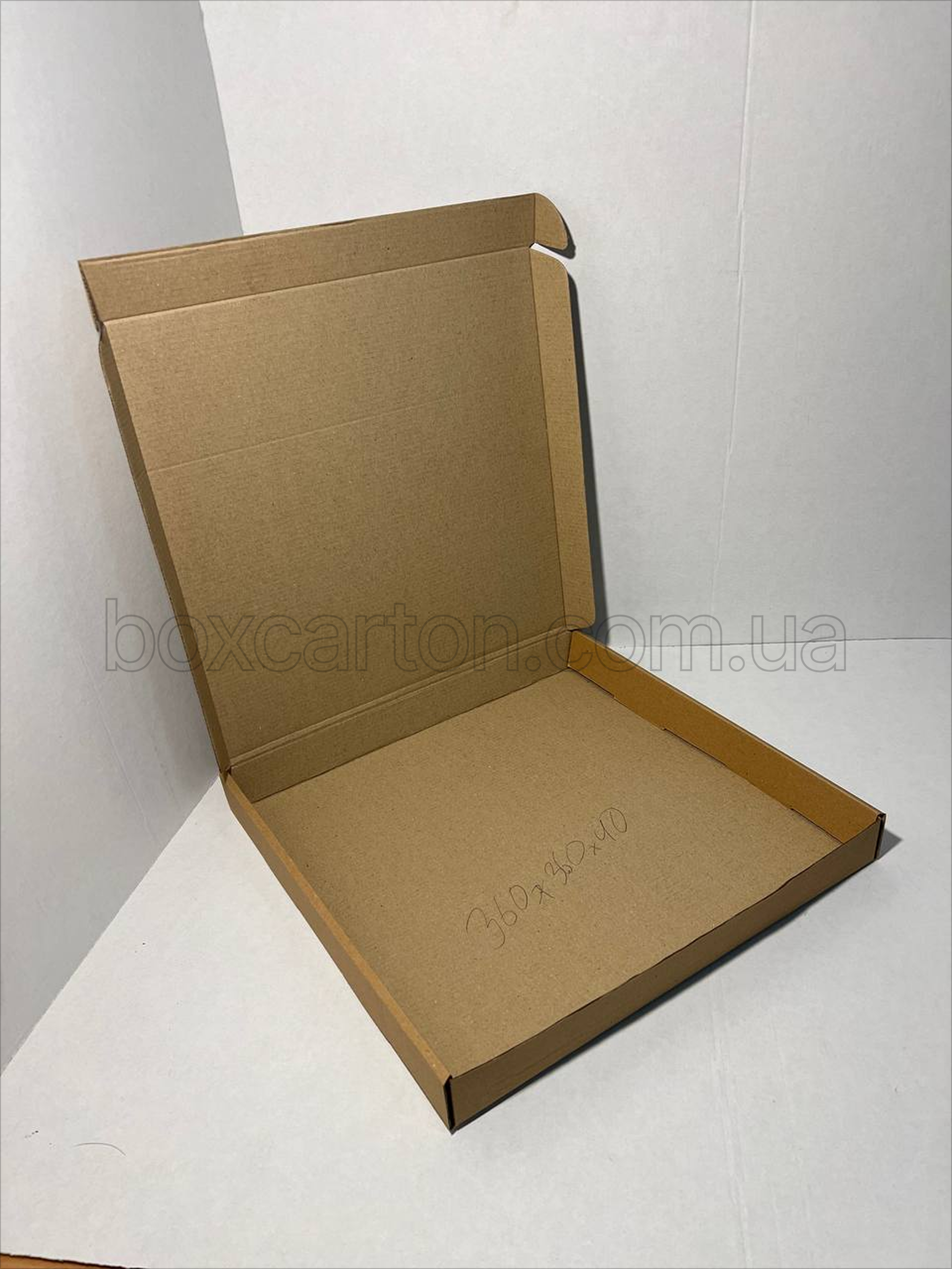Коробка конструкції K0427 розміром 360×360×40 мм виготовлена з гофрокартону 1-го типу та призначена для пакування великих плоских виробів. Невелика висота 40 мм у поєднанні з квадратним форматом робить цю модель оптимальною для поліграфічної продукції, постерів, календарів, плаского текстилю та інших тонких товарів. Конструкція забезпечує акуратний зовнішній вигляд і базовий захист від подряпин і незначних механічних впливів під час транспортування та зберігання.