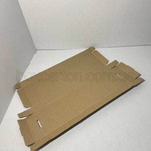 Коробка конструкції K0427 розміром 377×314×101 мм виготовлена з гофрокартону 1-го типу та призначена для пакування легких і середньогабаритних виробів. Конструкція забезпечує охайний зовнішній вигляд і базовий захист продукції від подряпин та незначних механічних впливів під час транспортування та зберігання.