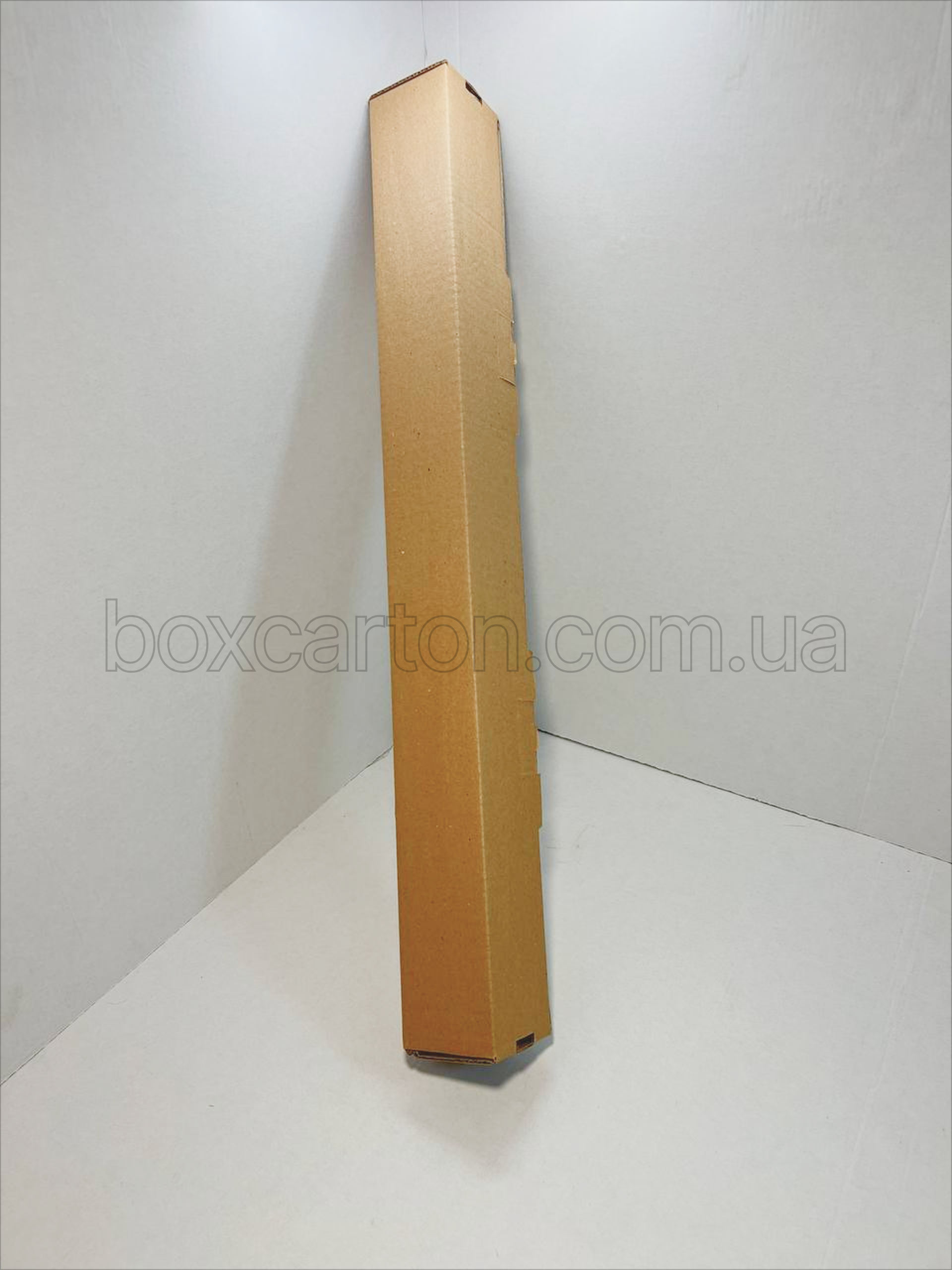 Коробка конструкції K0427 розміром 650×65×65 мм виготовлена з гофрокартону 1-го типу та призначена для пакування легких, довгих і вузьких виробів. Подовжений формат забезпечує зручне розміщення продукції без згинання та деформації, а жорстка конструкція допомагає зберігати форму під час транспортування та зберігання.